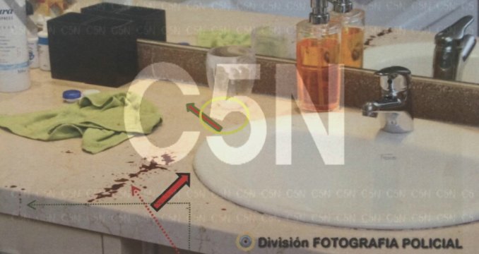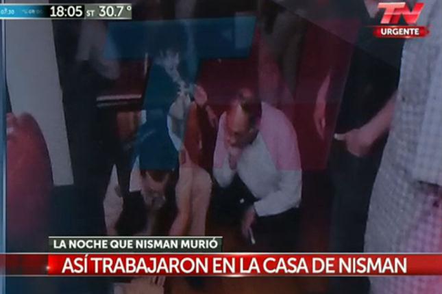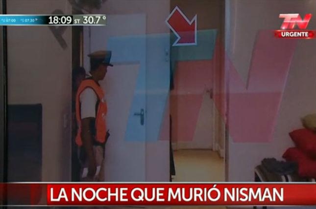 Las imágenes fueron publicadas por los canales Todo Noticias y C5N y en una de ellas se puede ver la puerta del baño donde estaba el cuerpo de Nisman, y un charco de sangre que aparece debajo de la puerta. También se ve a la fiscal Vivina Fein con sus colaboradores.