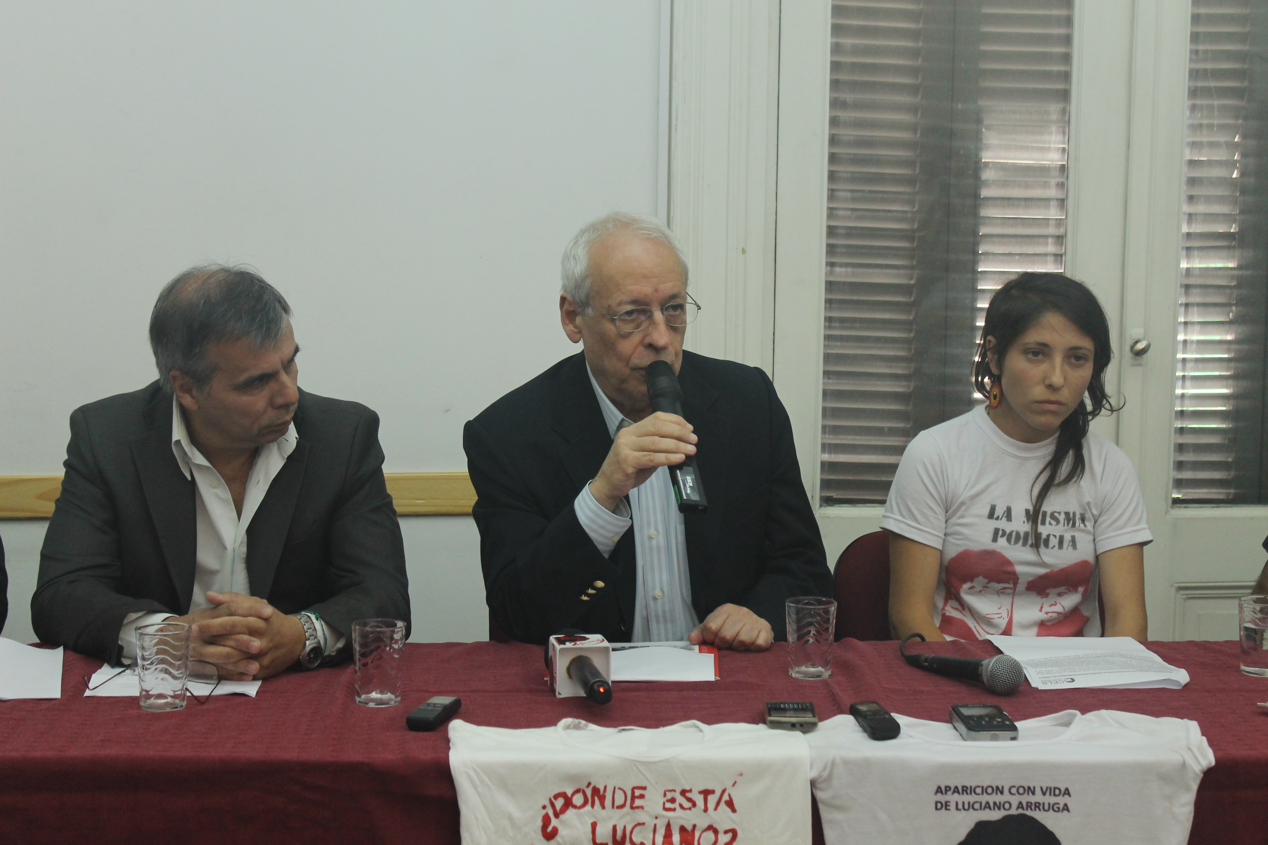 “La fiscal Castelli tardó 45 días en recibir a los familiares de Arruga. Y cuando los recibió estaba con los policías implicados detrás de ella. Esta es una de las causas más graves del país y me preocupa que se naturalicen estas cosas horribles”, dijo en la rueda de prensa el titular de la APDH de La Matanza, Pablo Pimental.